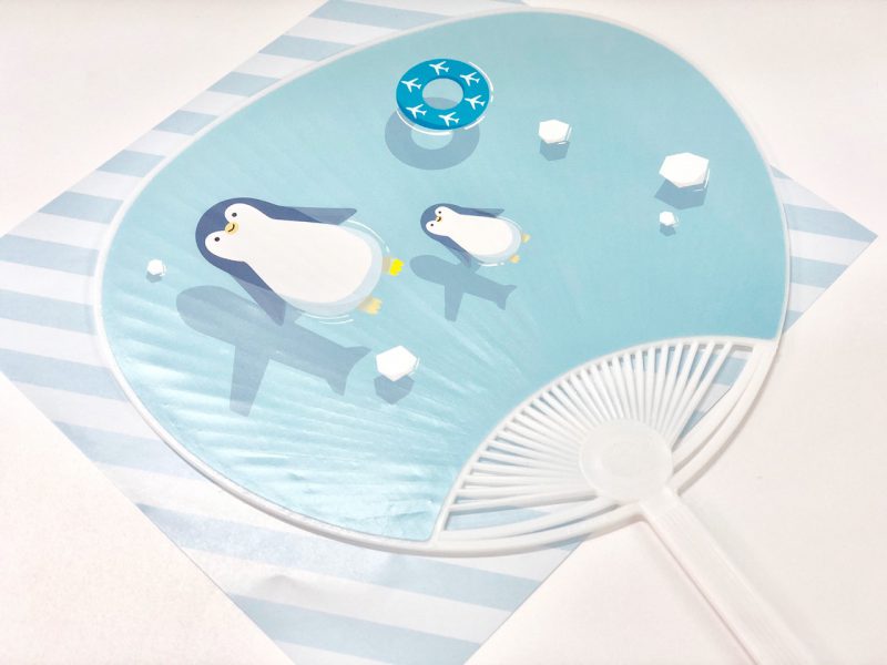 さわやかな空とペンギンのゆる〜い表情のうちわで