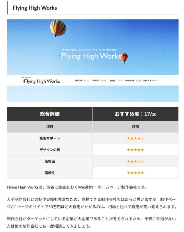 フライング・ハイ・ワークスは、東京のホームページ制作・Web制作会社・Webシステム制作会社です。東京都及びその近郊(首都圏)を中心として、SEO対策を意識したPC及びスマホのサイトをワンソース(レスポンシブ対応)で制作します。