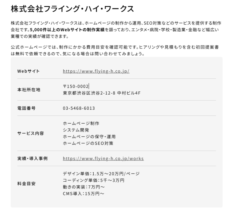 フライング・ハイ・ワークスは、東京のホームページ制作・Web制作会社・Webシステム制作会社です。東京都及びその近郊(首都圏)を中心として、SEO対策を意識したPC及びスマホのサイトをワンソース(レスポンシブ対応)で制作します。